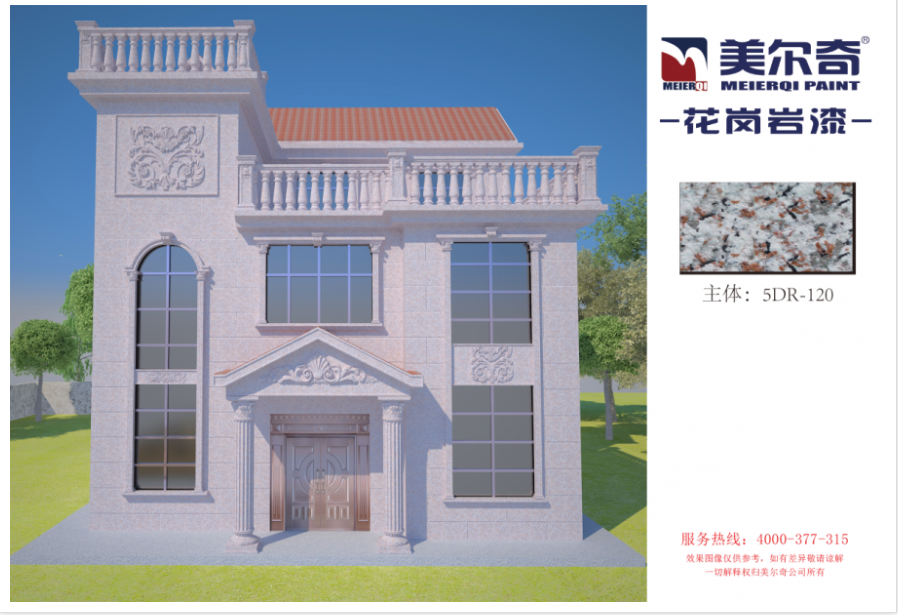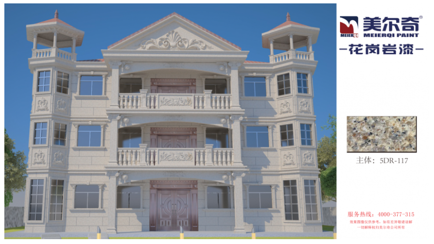作為新型環(huán)保外墻裝飾涂料,美爾奇仿石漆輕質(zhì)中硬,色彩天然逼真,使用抗開裂的高彈復(fù)合化工材料,耐擦洗、耐高溫、使用壽命長。具有防火、防水、耐酸堿、施工性優(yōu)、展色好、柔韌性好、強(qiáng)附著、強(qiáng)抗沖擊、高質(zhì)感、粘力強(qiáng)、永不褪色等特點。