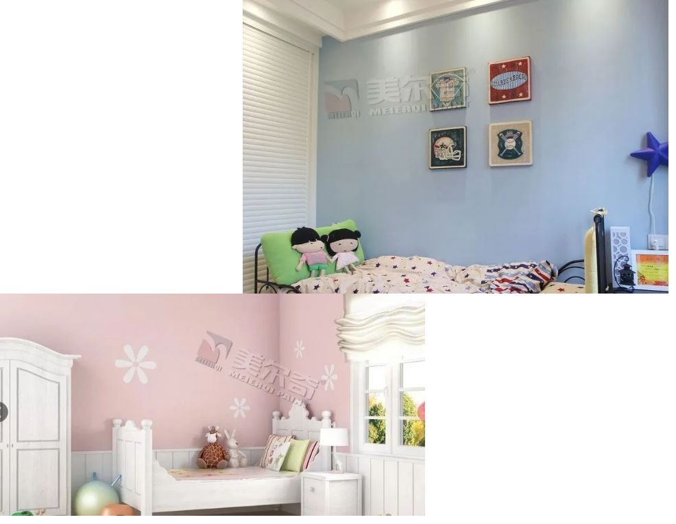 兒童房多采用明亮色彩的藝術(shù)涂料裝飾,蛋殼光、天鵝絨就是不錯的選擇,其具有絲絨質(zhì)感、手感細(xì)膩、珍珠光澤、質(zhì)地柔和,色彩感強(qiáng)、不褪色、耐污性高,與孩子活潑靈動的性格相呼應(yīng)。用肌理漆做上花朵動物等等印花效果的造型,也是相當(dāng)?shù)那纹た蓯邸?/span>